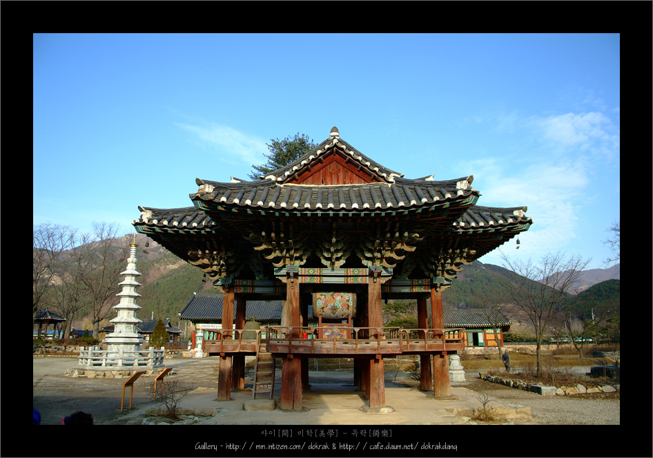 국내에서 유일한 십자형 평면을 가진 전통건축물인 완주 송광사 범종각 입니다.