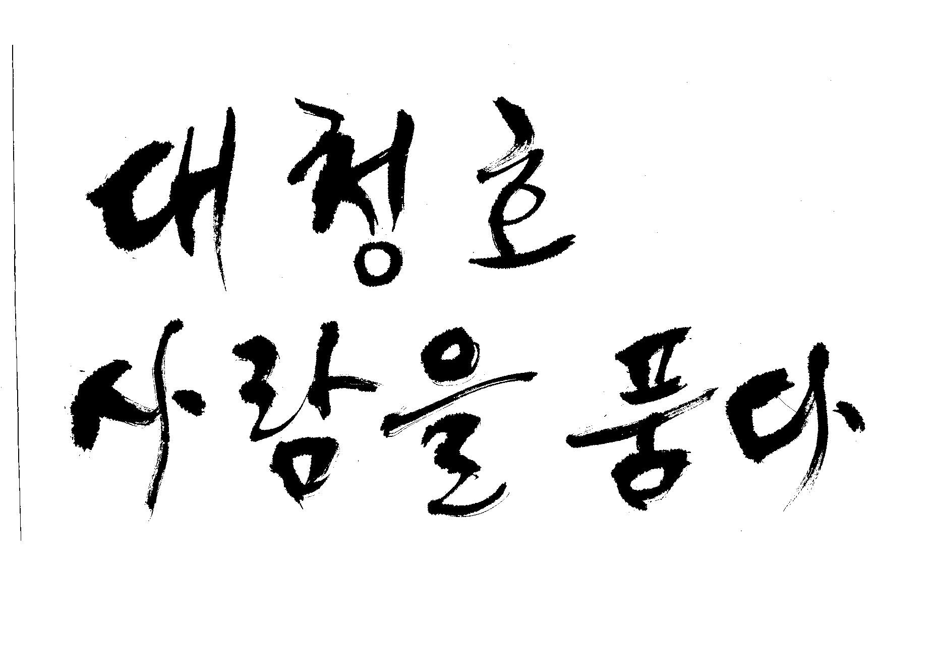 캘리 부탁드려요 김철호 일반 0 5512 2009.06.03 12:12 > > > > > 대청호 > > 사람을 품다 > > > > - 방송용 다큐멘터리에 들어갈겁니다 > > 죄송합니다만 빨리 부탁드려요 > > 두줄로 가운데 맞춤으로 써주세요 - > > > > 줄맞춤은 알아서... >